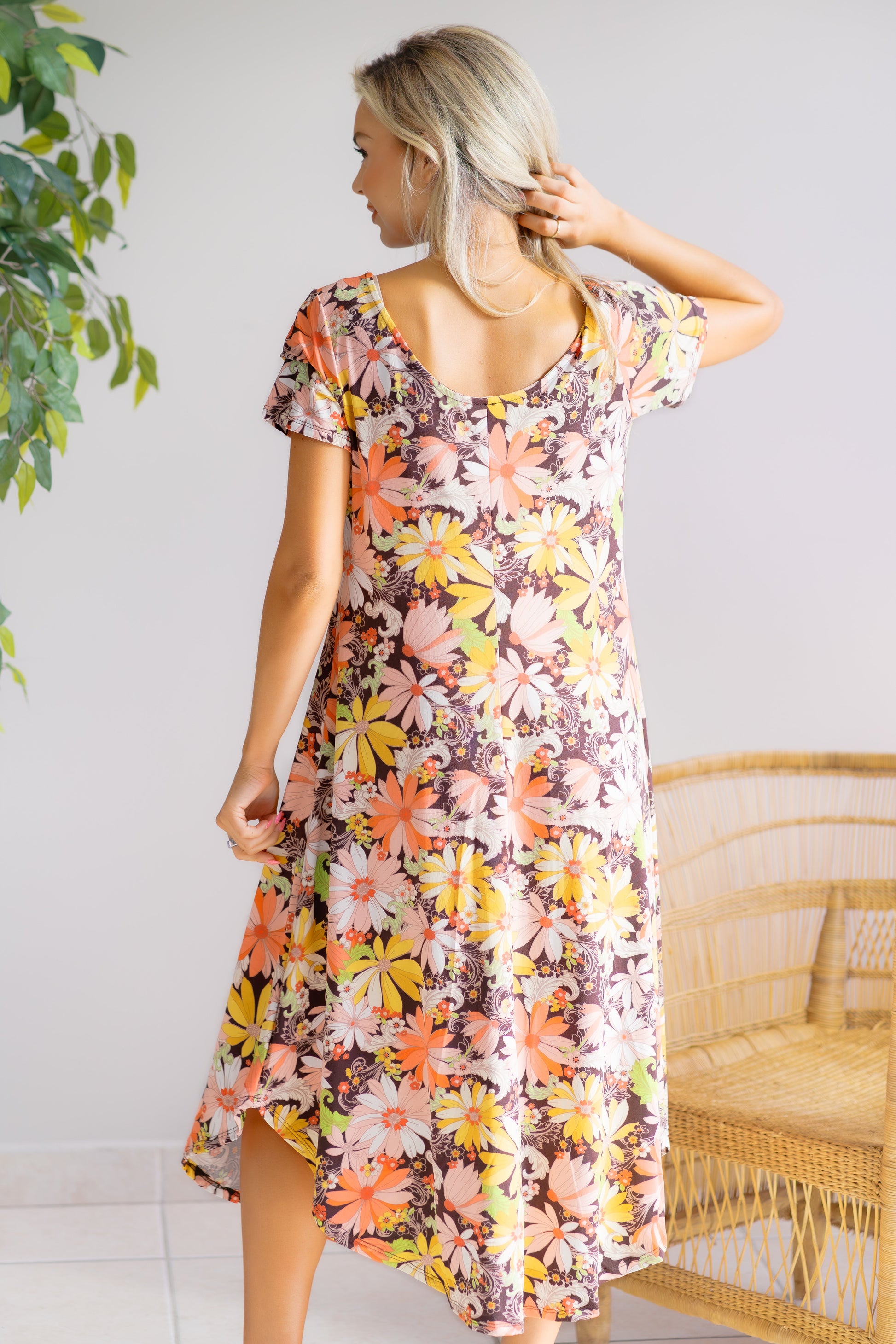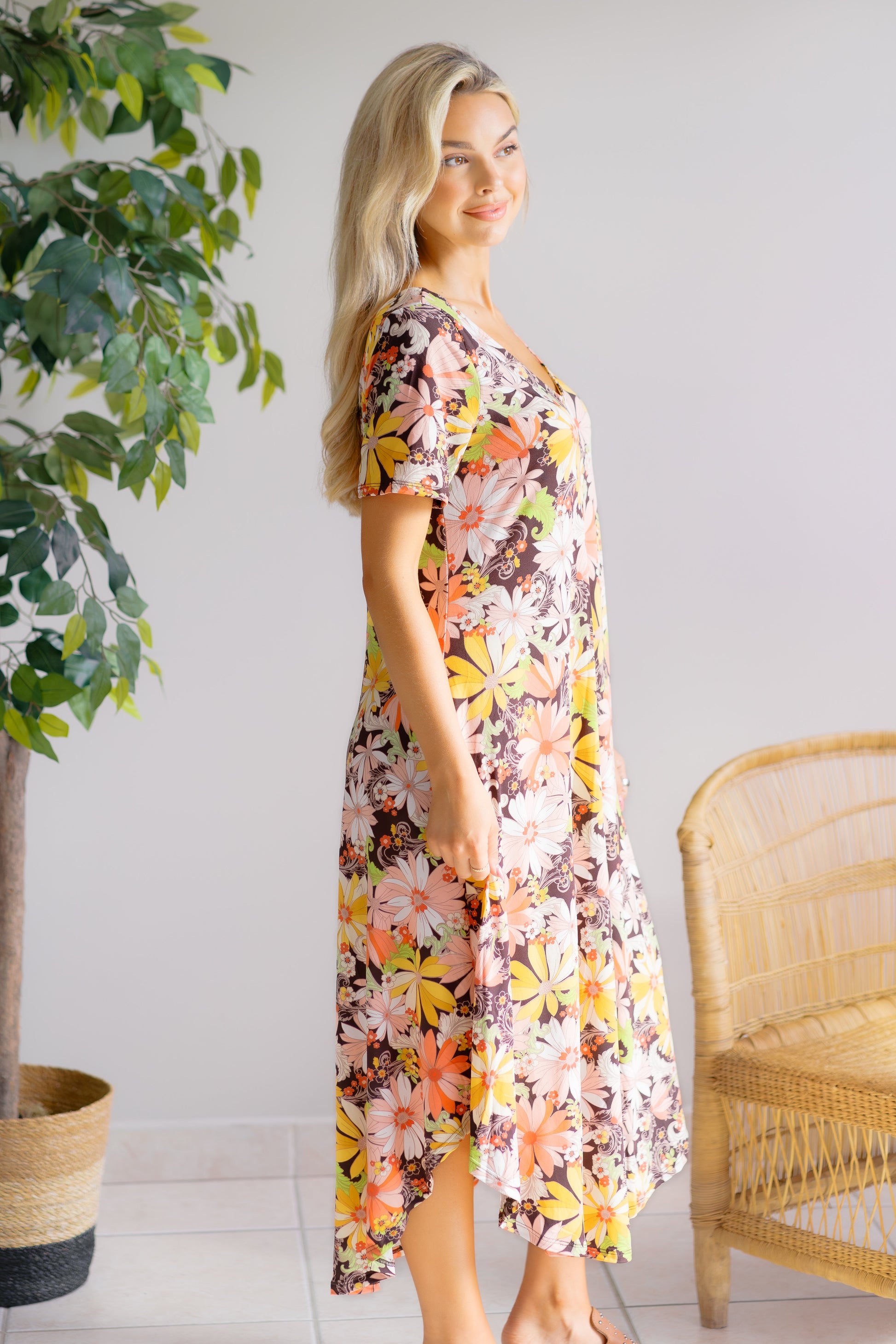Embrace effortless elegance with the Petals in the Breeze Floral Asymmetrical Hem Midi Dress. Its flowing silhouette and unique asymmetrical hem create a graceful movement that captures attention. The delicate floral pattern adds a touch of romance, making it perfect for both daytime outings and special occasions. Designed to flatter every figure, this dress combines comfort with style, ensuring you feel confident and radiant wherever you go. Elevate your wardrobe with a piece that celebrates femininity and charm.